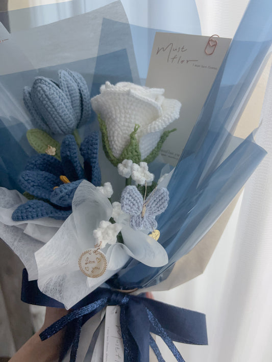 Mustflor 白色情人節特別款花束 - 藍色微光 - Lumière Bleue