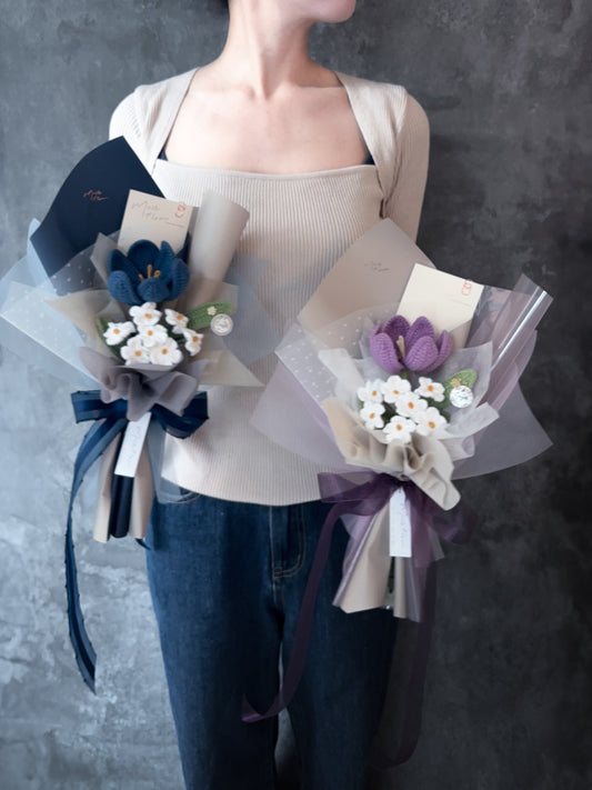 三朵鬱金香勿忘我花束-藍 In Blue Shades