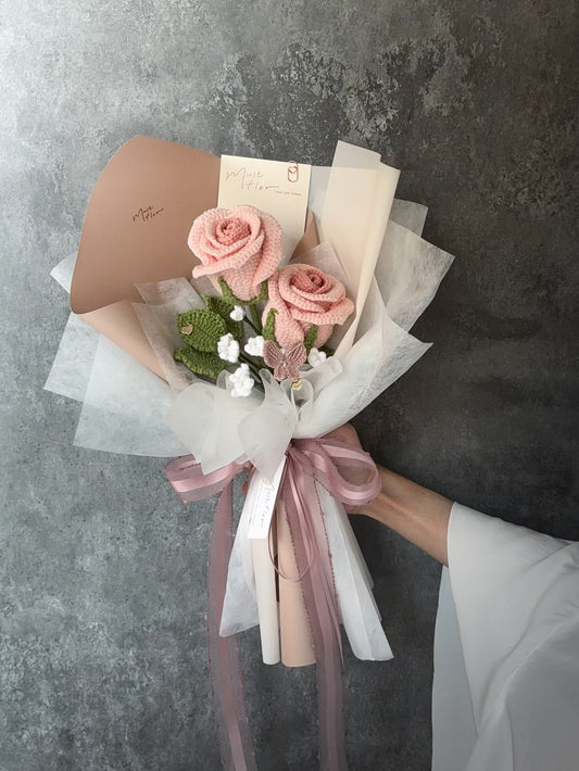 雙玫瑰滿天星花束-柔光粉|Soft Glow
