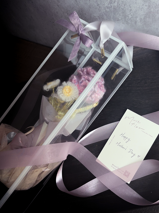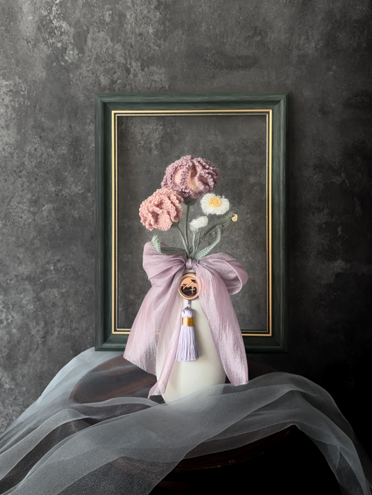 雙朵康乃馨與小雛菊瓶花禮盒-莫蘭迪羊毛-霧紫