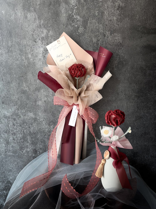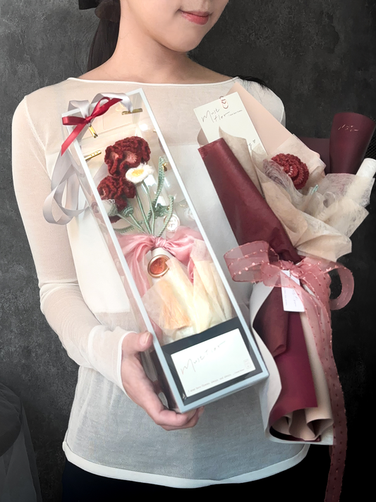 單枝康乃馨花束-莫蘭迪羊毛- 烏木紅|Ebony Red (2026新色)