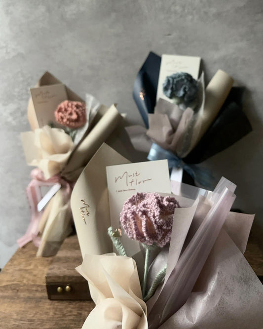 三朵玫瑰與滿天星花束- 手工針織花束 3Rose & Baby's Breath