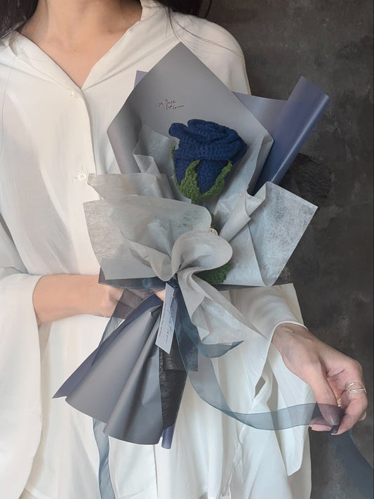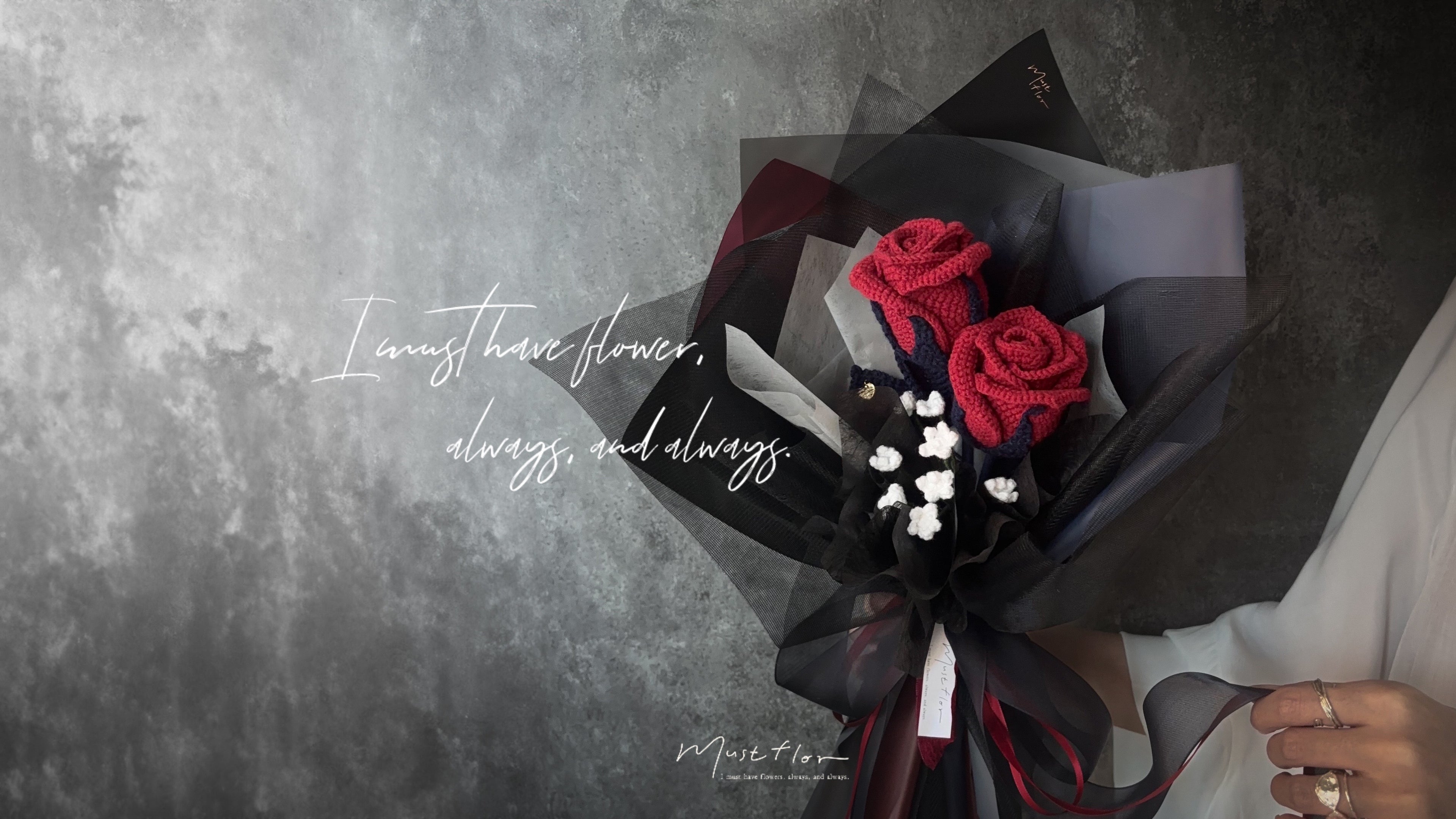 陌花 Mustflor 情人節精選手工針織花束/花禮 ❧ 深酒紅|經典常駐的紅如星球上的獨一無二玫瑰,熱烈而深情,永不褪色的浪漫 ❧ 晨霧藍|晨間的薄霧,輕輕覆蓋在藍色花瓣上,散發出一種沉靜陪伴的氣息 ❧ 春芽紫|帶點暖意的柔紫色,溫柔且細膩,特殊的色調,如春日初綻的花蕾