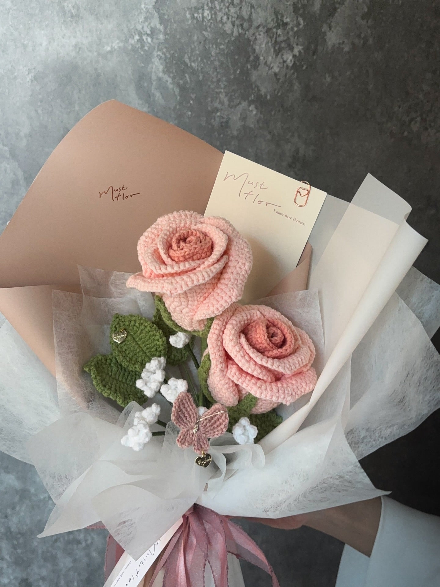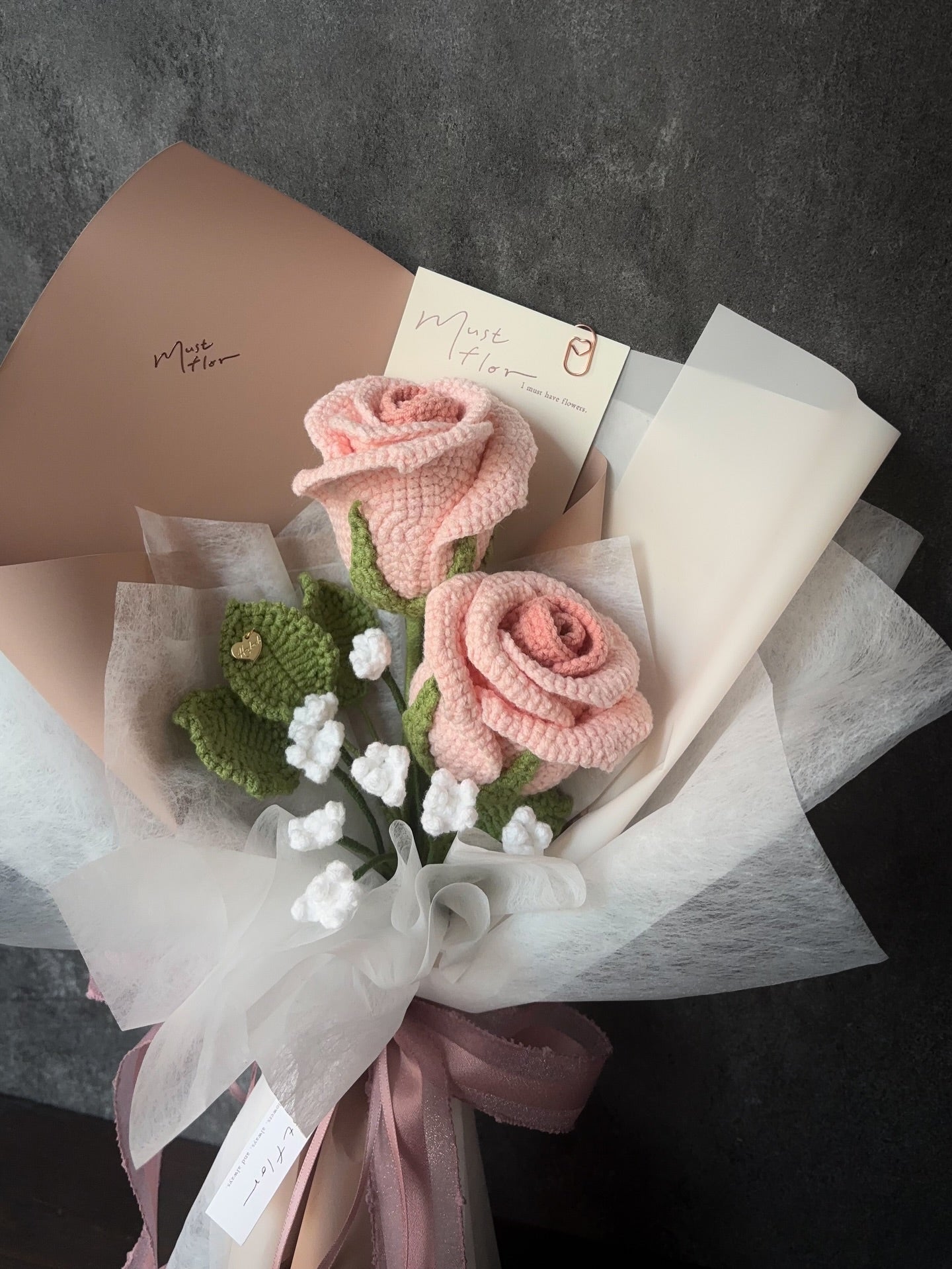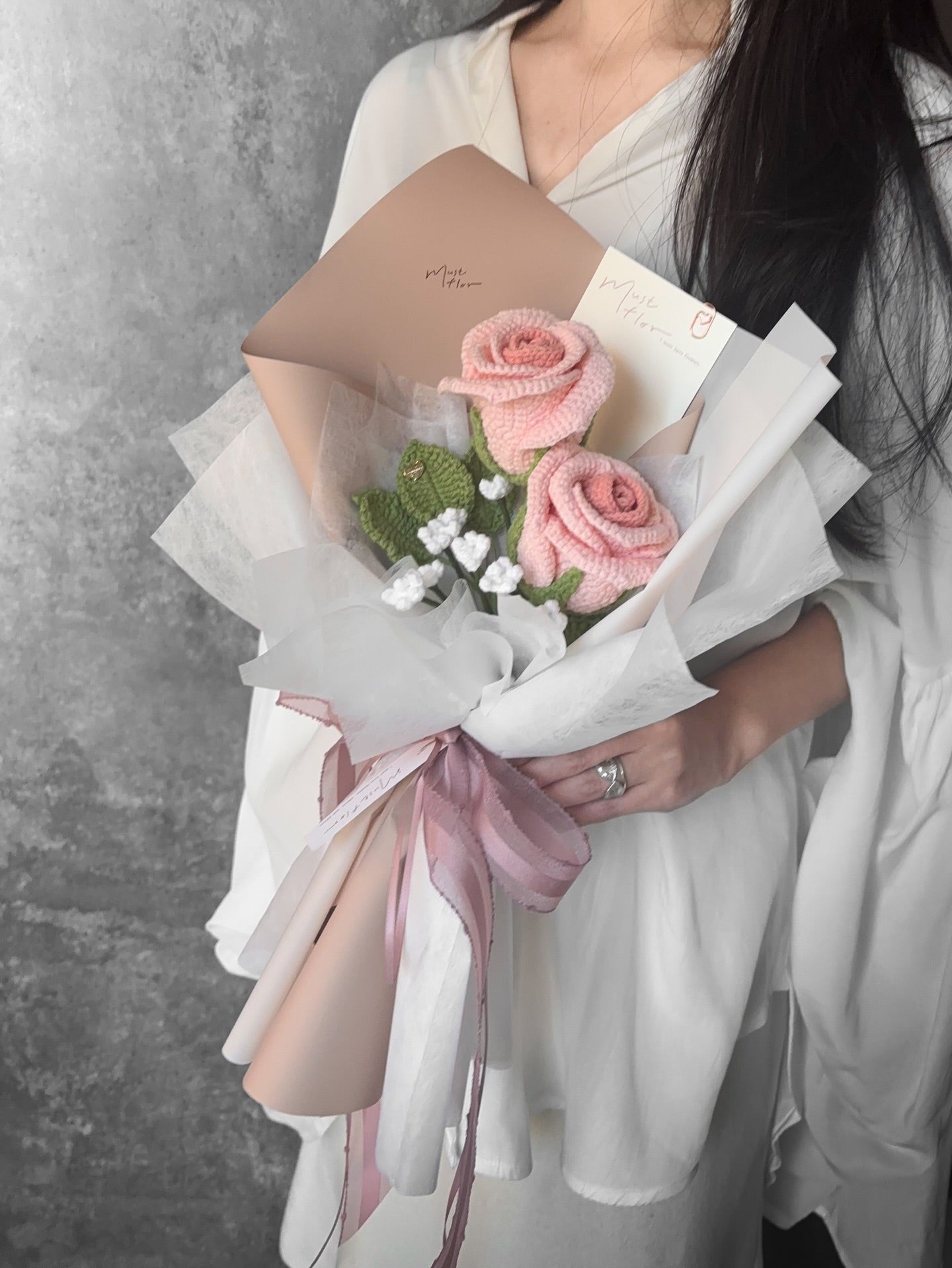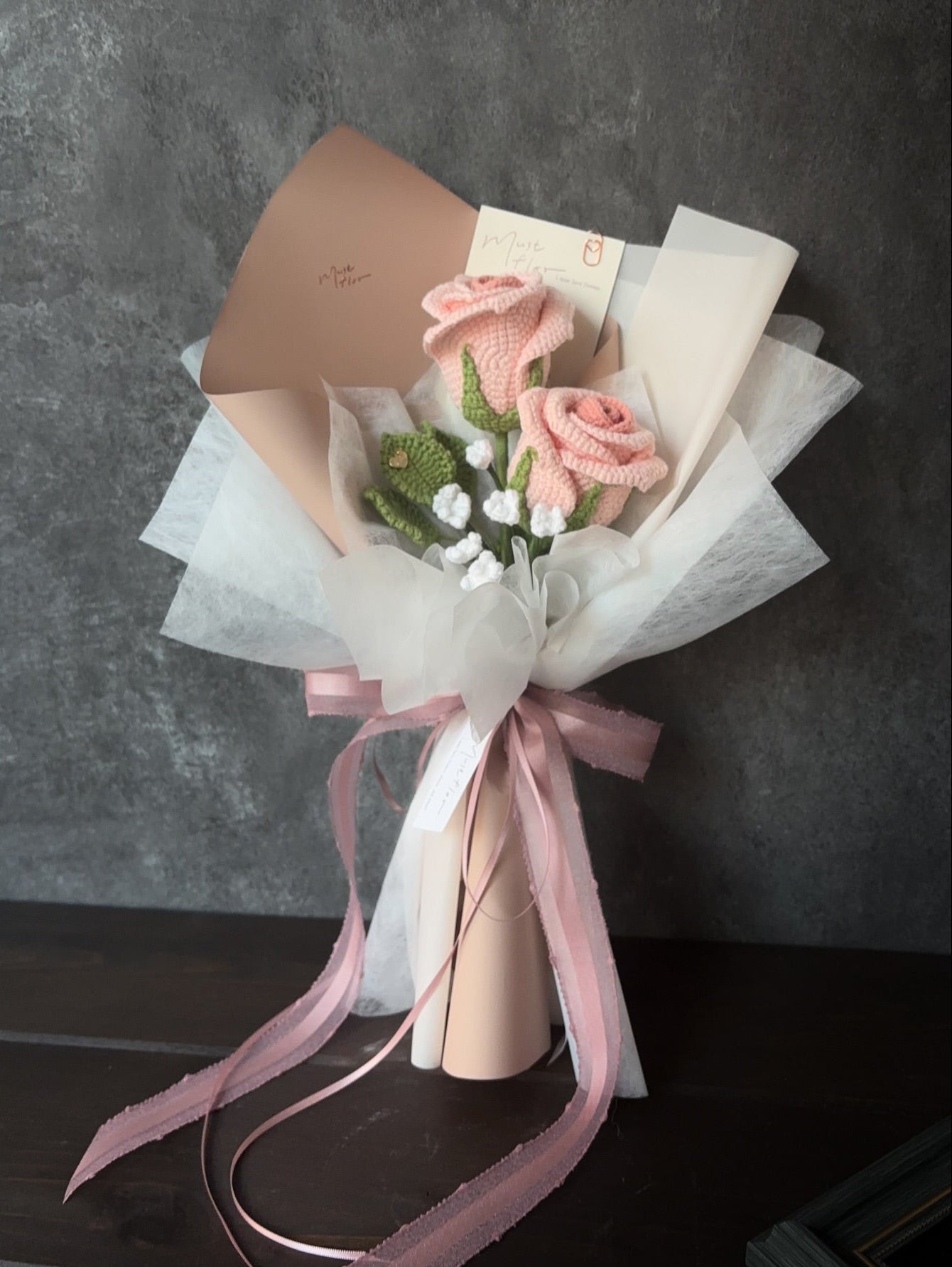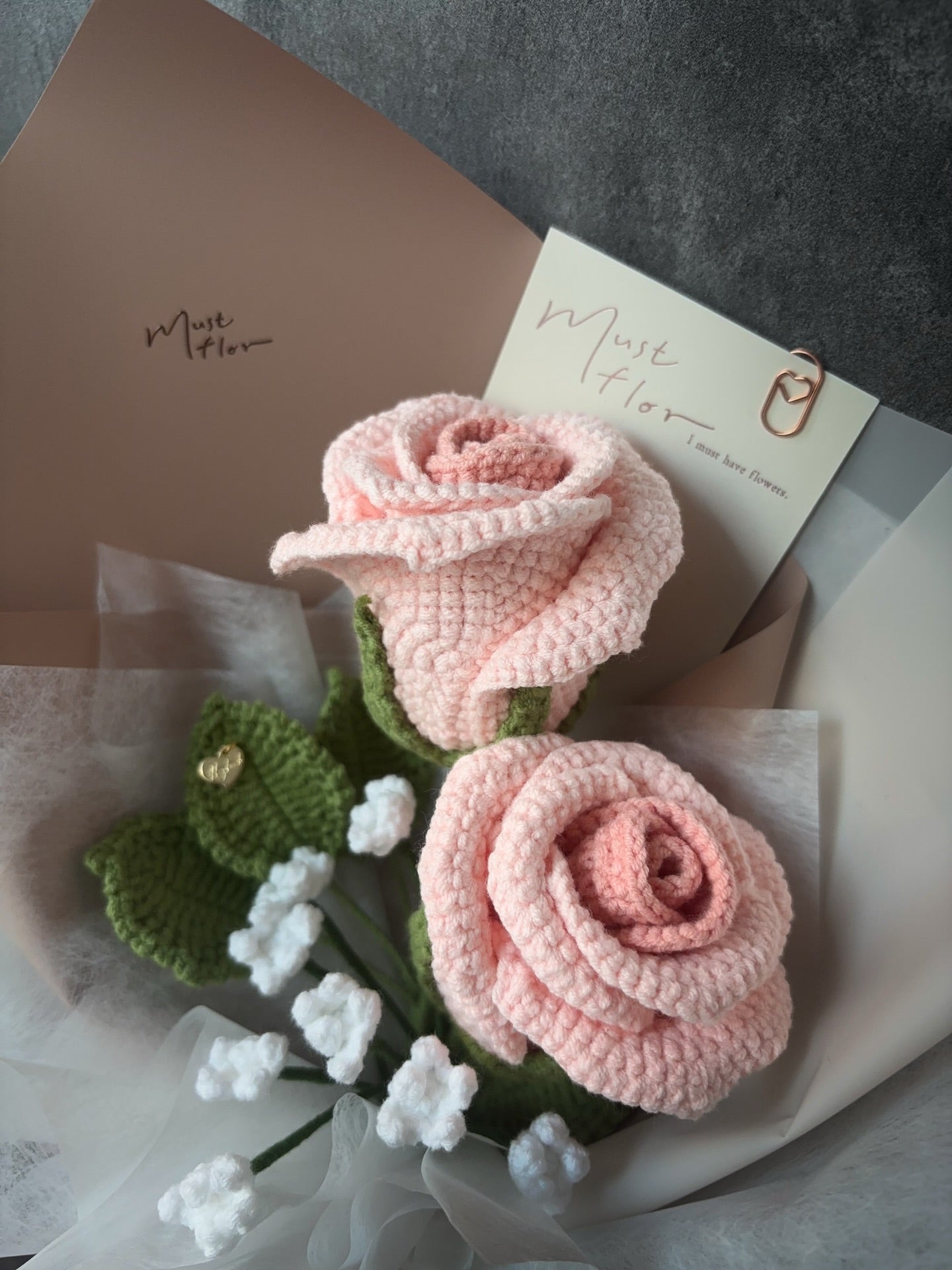 雙玫瑰滿天星花束-柔光粉|Soft Glow