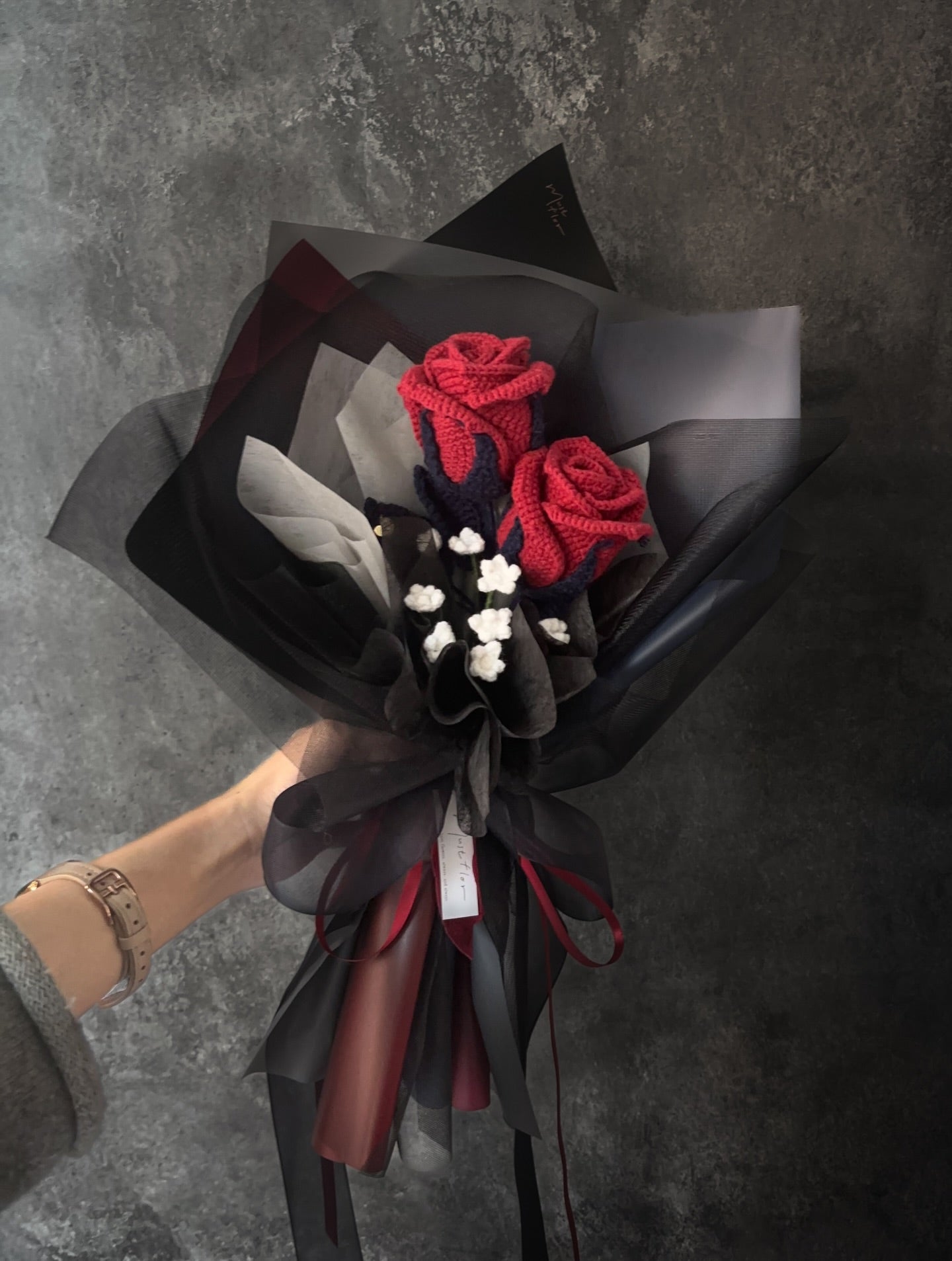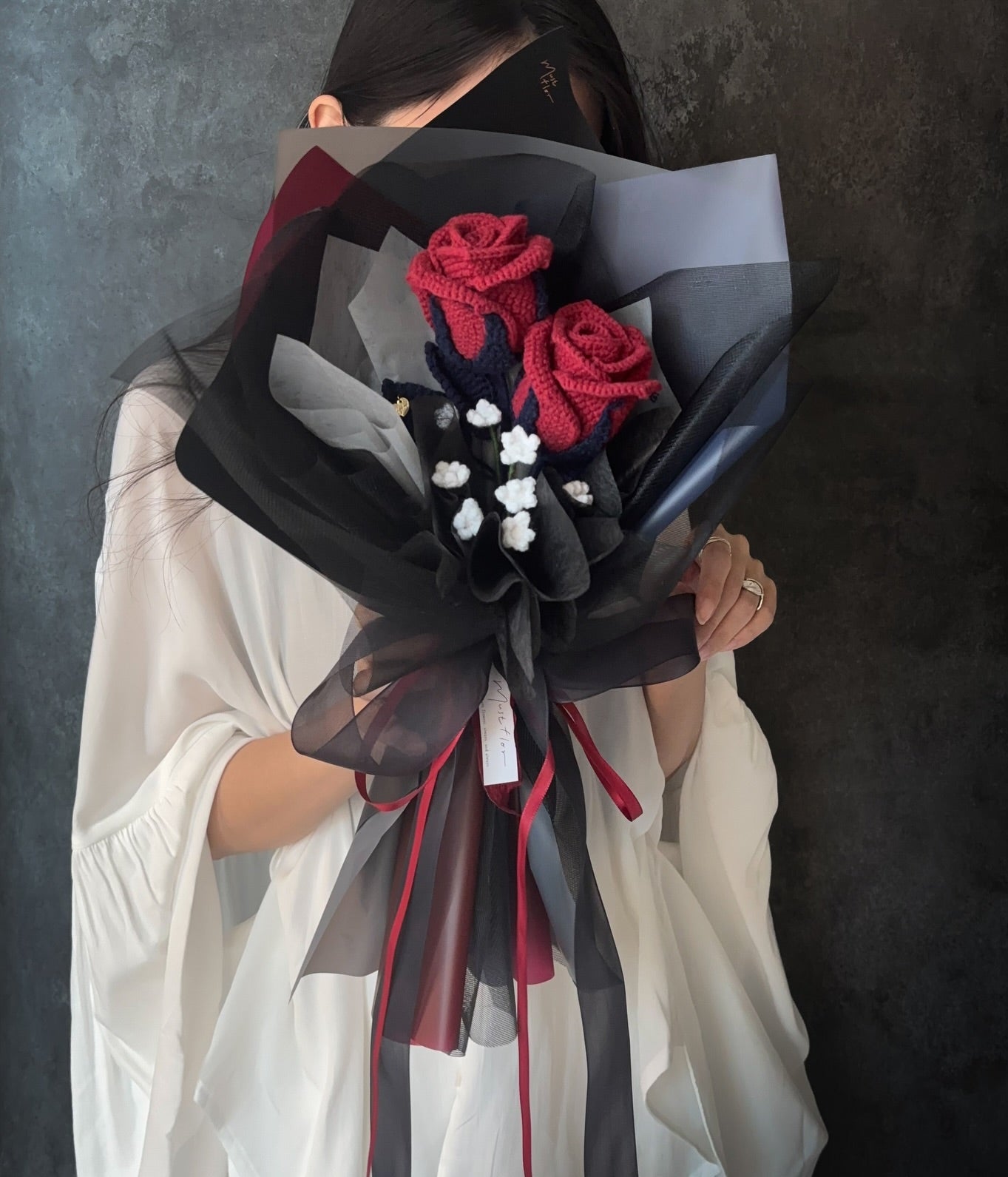 - 限量 |夜紅玫瑰與滿天星花束 -